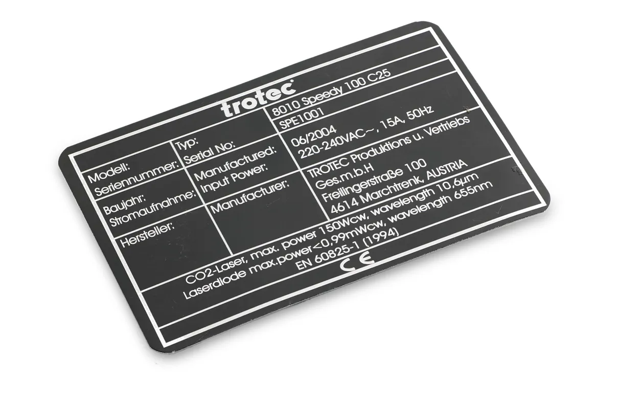 Laser marking is the perfect method for producing data plates. Regardless of whether you need to label machine components for legal reasons or you simply need functional markings: You can laser mark self-adhesive materials, plastics and metals.