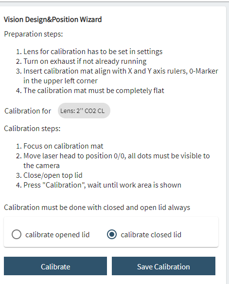 Updated interface for Vision Design & Position calibration procedure