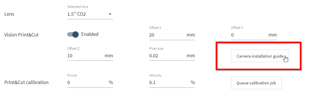 Separate Print&Cut camera driver installation via settings