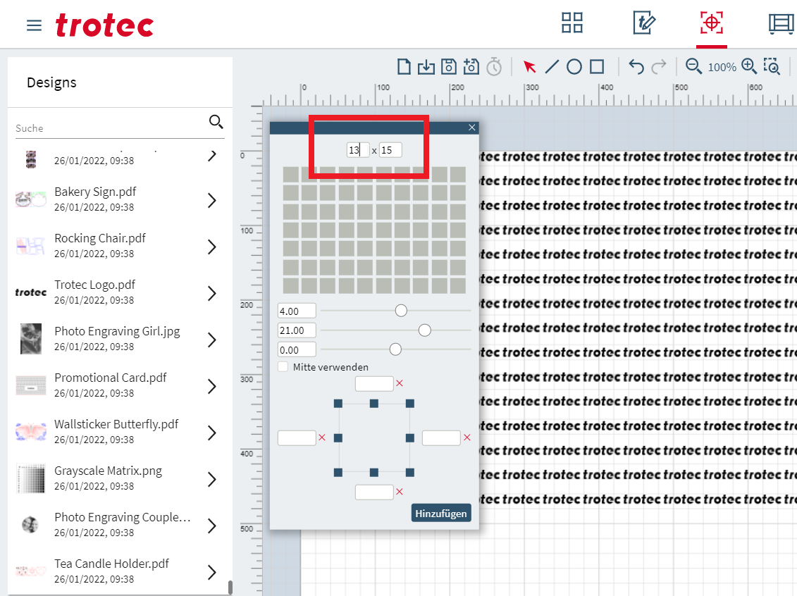 With the new text feature a widget opens that allows for easier setting of font properties. This includes a preview of the font in the design and displaying text properties only when texts are selected. In addition it is now possible to select the font before you start typing.