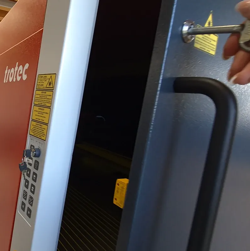 • An efficient workflow is important to many of our customers. That is why we pay attention to many "little things" to make it as easy as possible for you. For example, this system can also be loaded through the side door. The door is sensor controlled to ensure Class 2 laser safety. This means that the laser process can only be started when the door is closed.